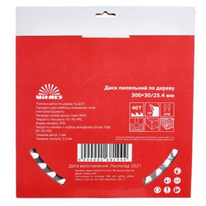 Пиляльний диск Vitals по дереву 300×30/25.4, ATB 40 підходить для поздовжнього та поперечного розпилу деревини – як м’якої, так і твердої породи, а також ДВП, ДСП.