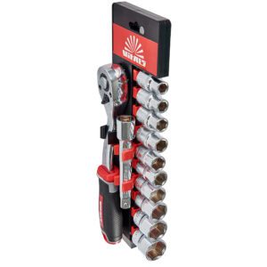 Набір торцевих головок з тріскачкою 1/2″ Vitals Master призначений для монтажу та демонтажу різних різьбових з’єднань.