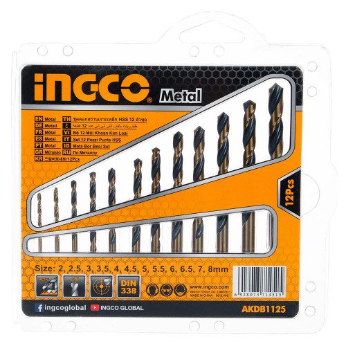 Набір свердел по металу 12 шт 2-8 мм INGCO виконаний зі швидкорізальної сталі (HSS).