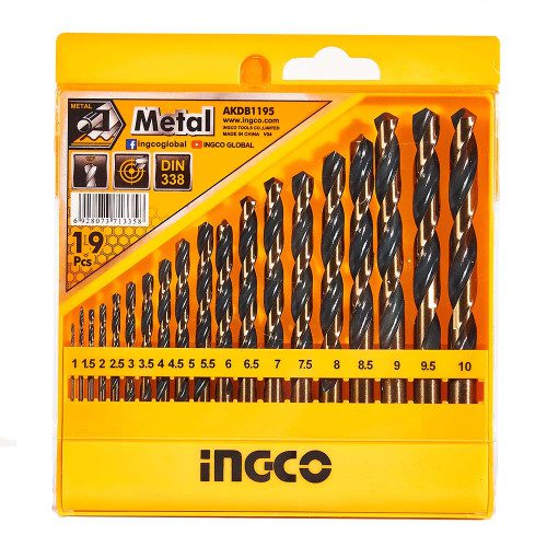 Набір свердел по металу 19 шт 1-10 мм INGCO виконаний зі швидкорізальної сталі (HSS).