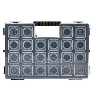 Ударостійкий корпус з АБС-пластику та міцні пластикові замки надійно захистять вміст від пошкоджень та раптового розсипання. Ергономічне руків’я дозволить легко та зручно транспортувати органайзер на будь-яку локацію.