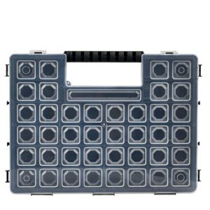 Ударостійкий корпус з АБС-пластику та міцні пластикові замки надійно захистять вміст від пошкоджень та раптового розсипання. Ергономічне руків’я дозволить легко та зручно транспортувати органайзер на будь-яку локацію.