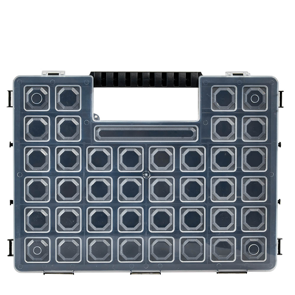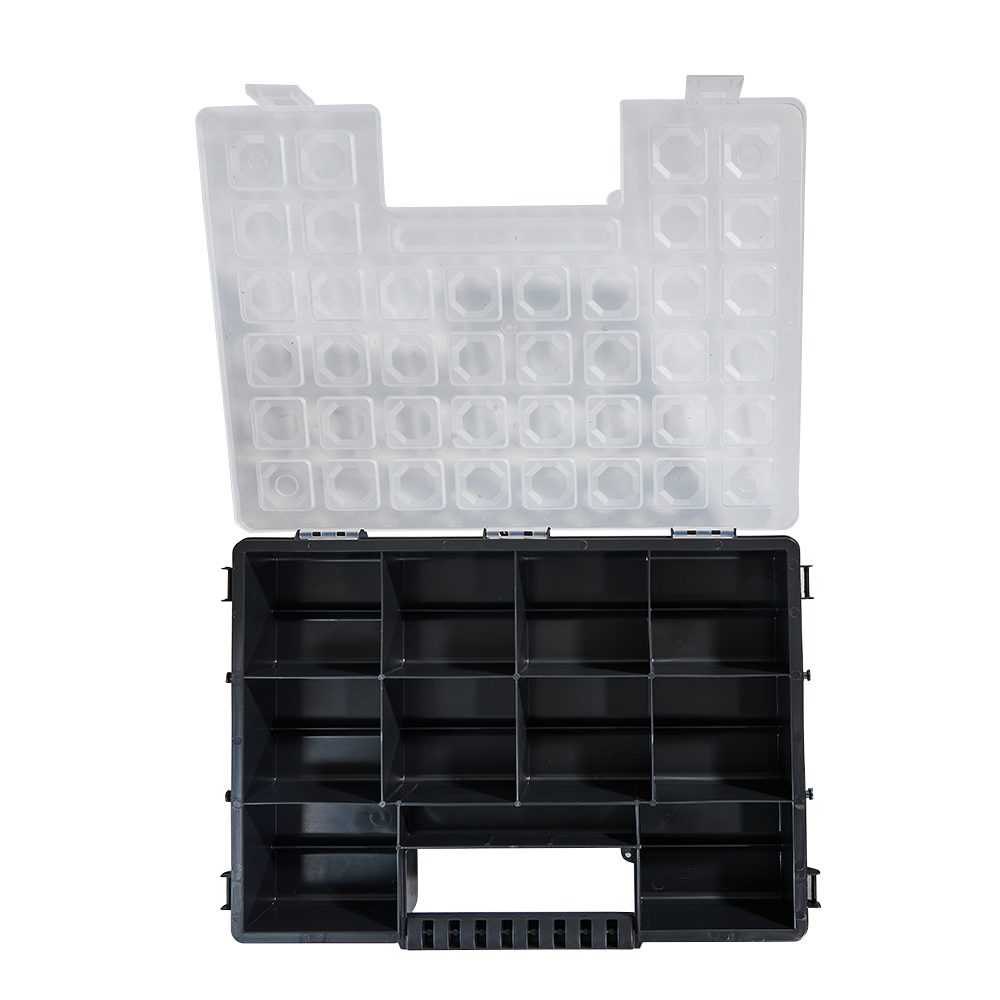 Він стане незамінним для зберігання наборів інструментів та дрібних деталей домашнього майстра, творчої рукодільниці, затятого рибалки та мисливця, адже грамотний поділ на секції дозволяє системно організувати зберігання дрібних деталей.