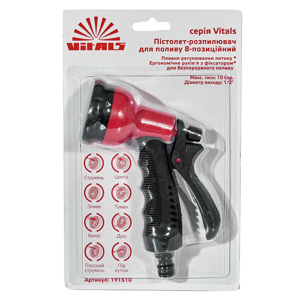 Опис пістолета-розпилювача 8-позиційного пластикового Vitals