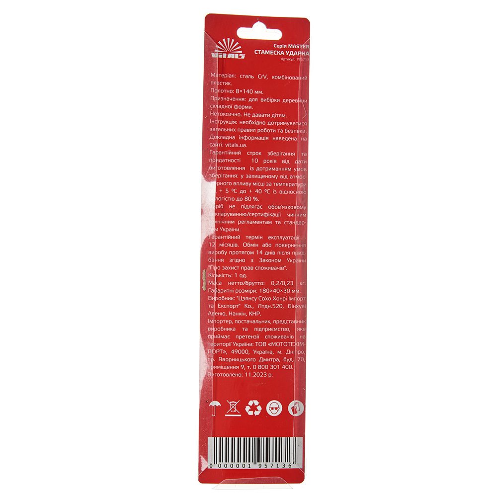 Опис стамески 8×140 мм Vitals Master
