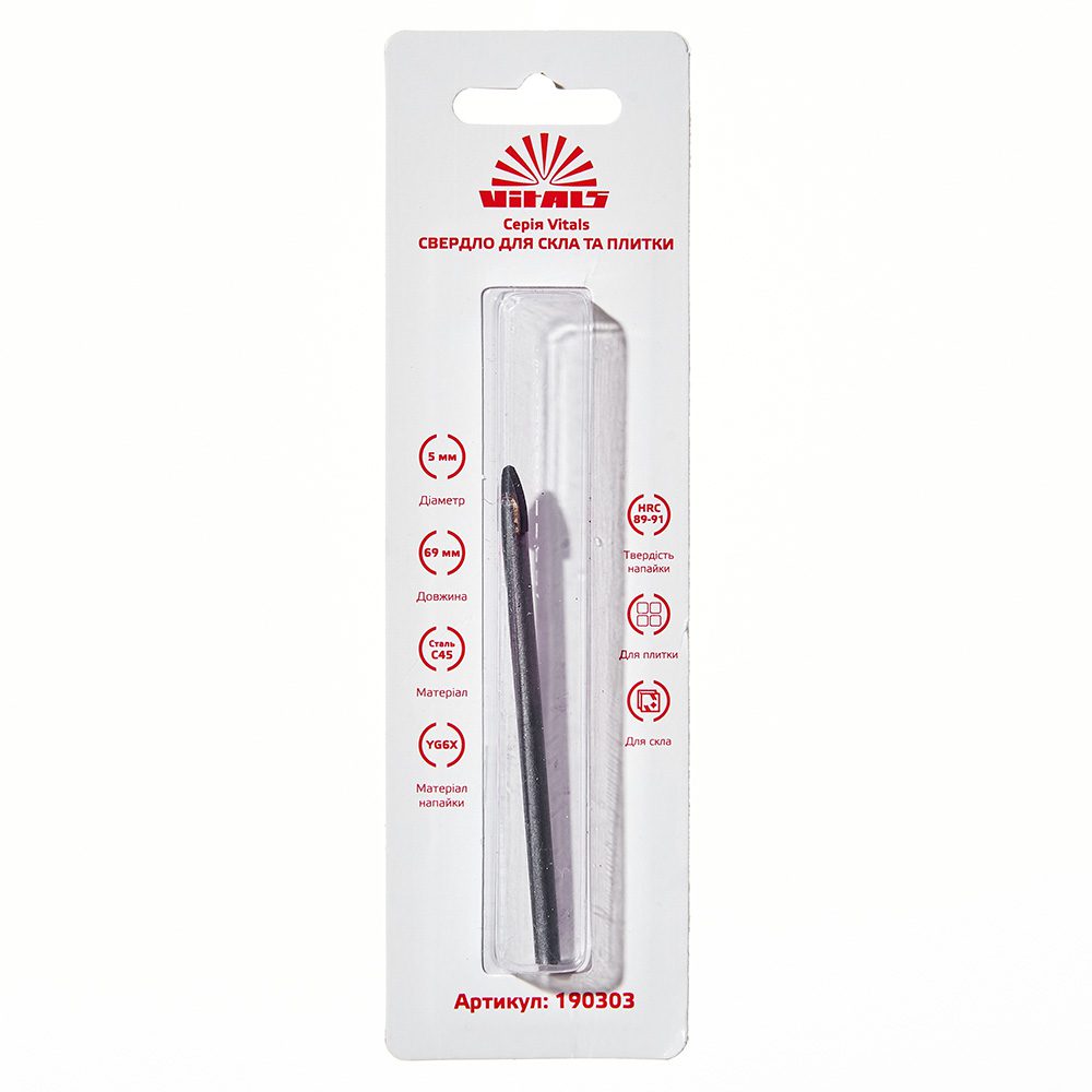 Опис свердла пікоподібного по склу та плитці 5 мм Vitals
